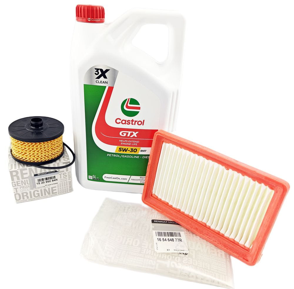 Oryginalny zestaw Filtra oleju, powietrza oraz 5L oleju CASTROL GTX RN17 do samochodu DACIA SANDERO III 1.0 TCE 100 KM