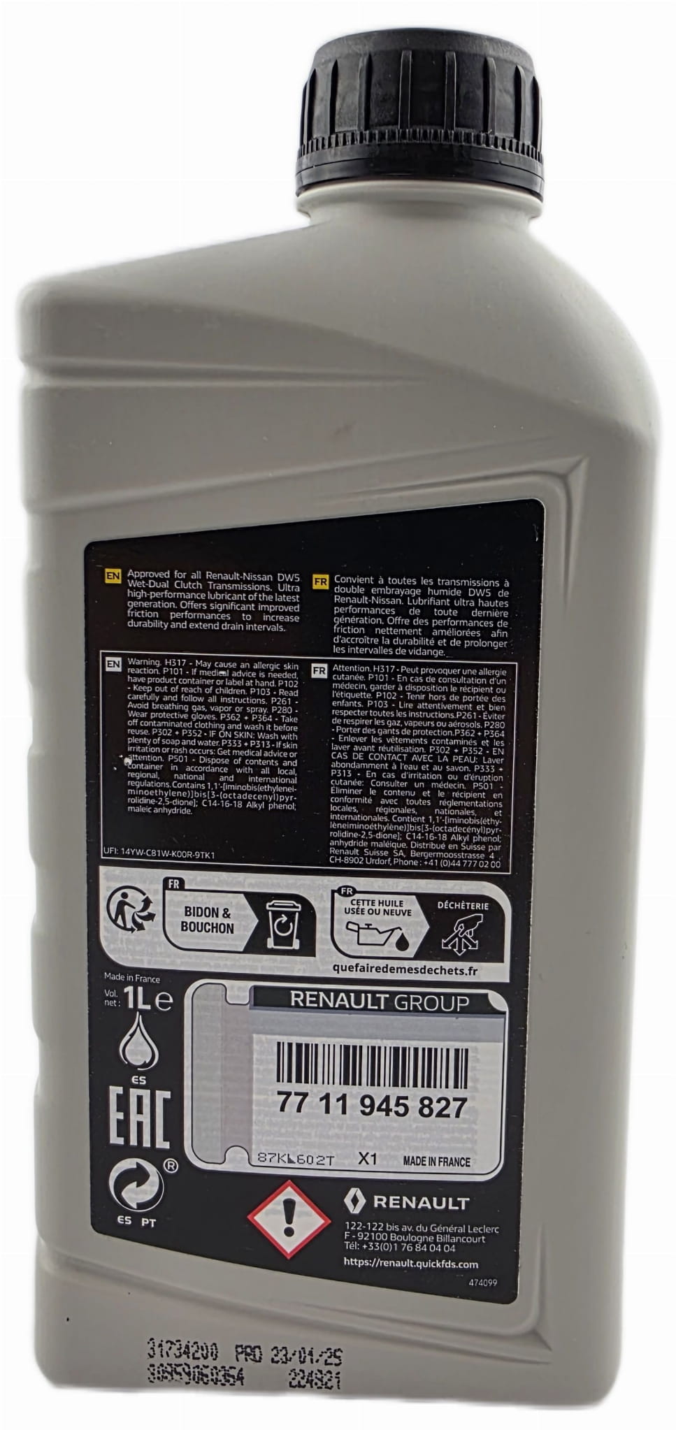 ORYGINALNY olej do samochodów Renault z automatyczną dwusprzęgłową skrzynią biegów EDC.