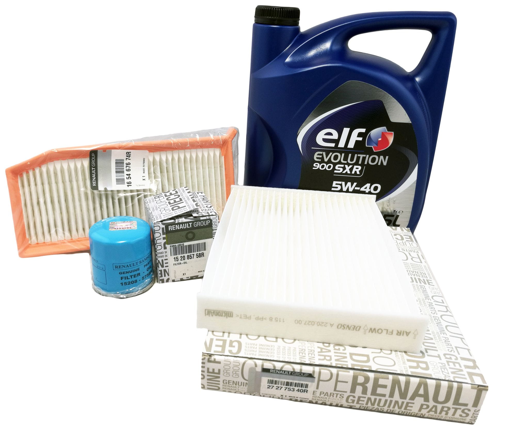 Oryginalny zestaw filtra oleju, powietrza, kabiny + OLEJ ELF EVOLUTION 900 SXR 5W40 do samochodu DACIA DOKKER 1.6 BENZYNA 102KM