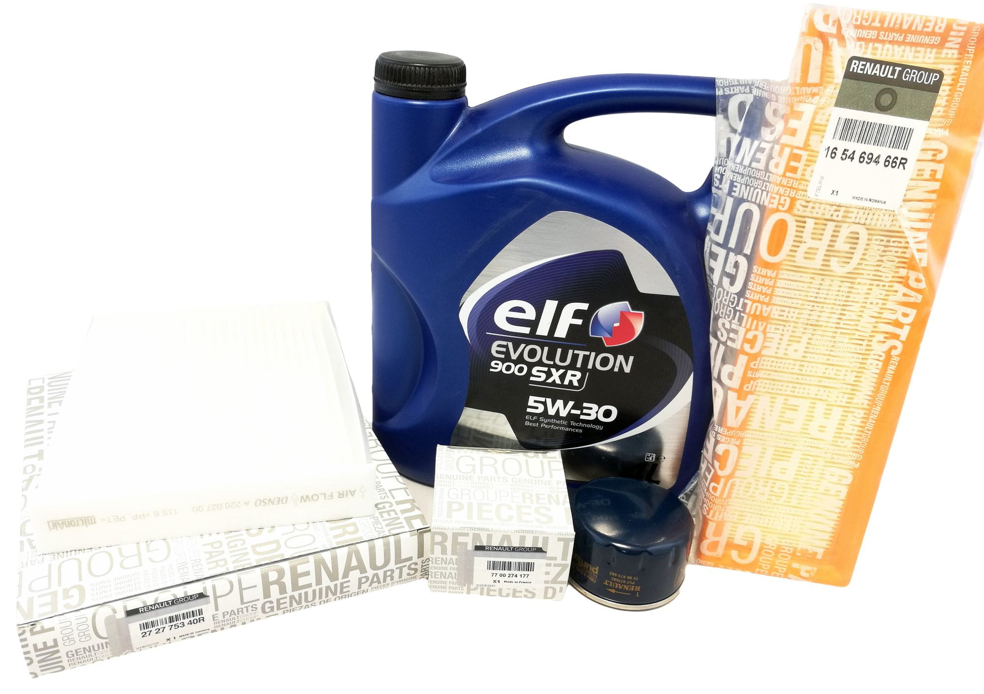 Oryginalny zestaw filtra oleju, powietrza, kabiny, paliwa + OLEJ ELF EVOLUTION 900 SXR 5W30 do samochodu DACIA DOKKER 1.6 BENZYNA 84 KM