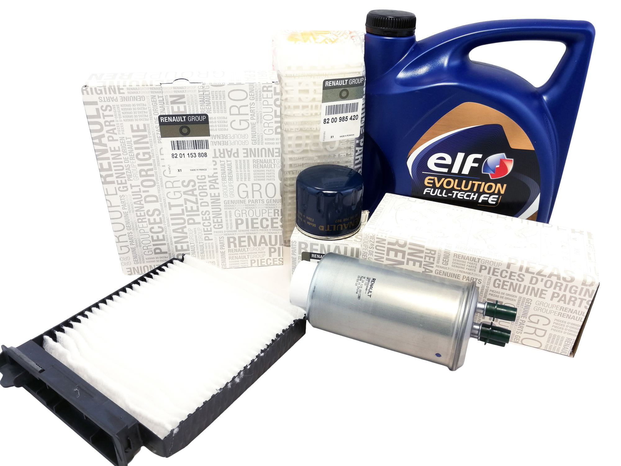 Oryginalny zestaw filtra oleju, powietrza, kabiny, paliwa + OLEJ ELF EVOLUTION FULL-TECH FE 5W30 do samochodu DACIA DUSTER 1.5 DCI 90km