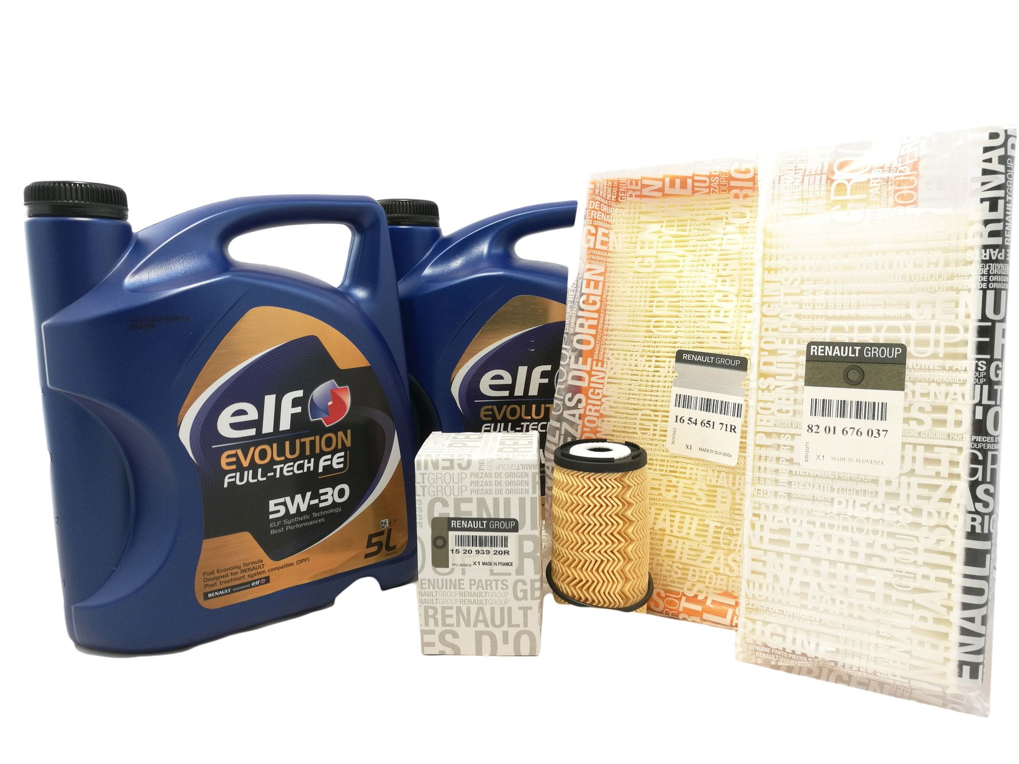 Oryginalny zestaw filtra oleju, powietrza, kabiny + Olej ELF FULL TECH 5W30 5L+ 5L do samochodu RENAULT MASTER III 2.3 DCI