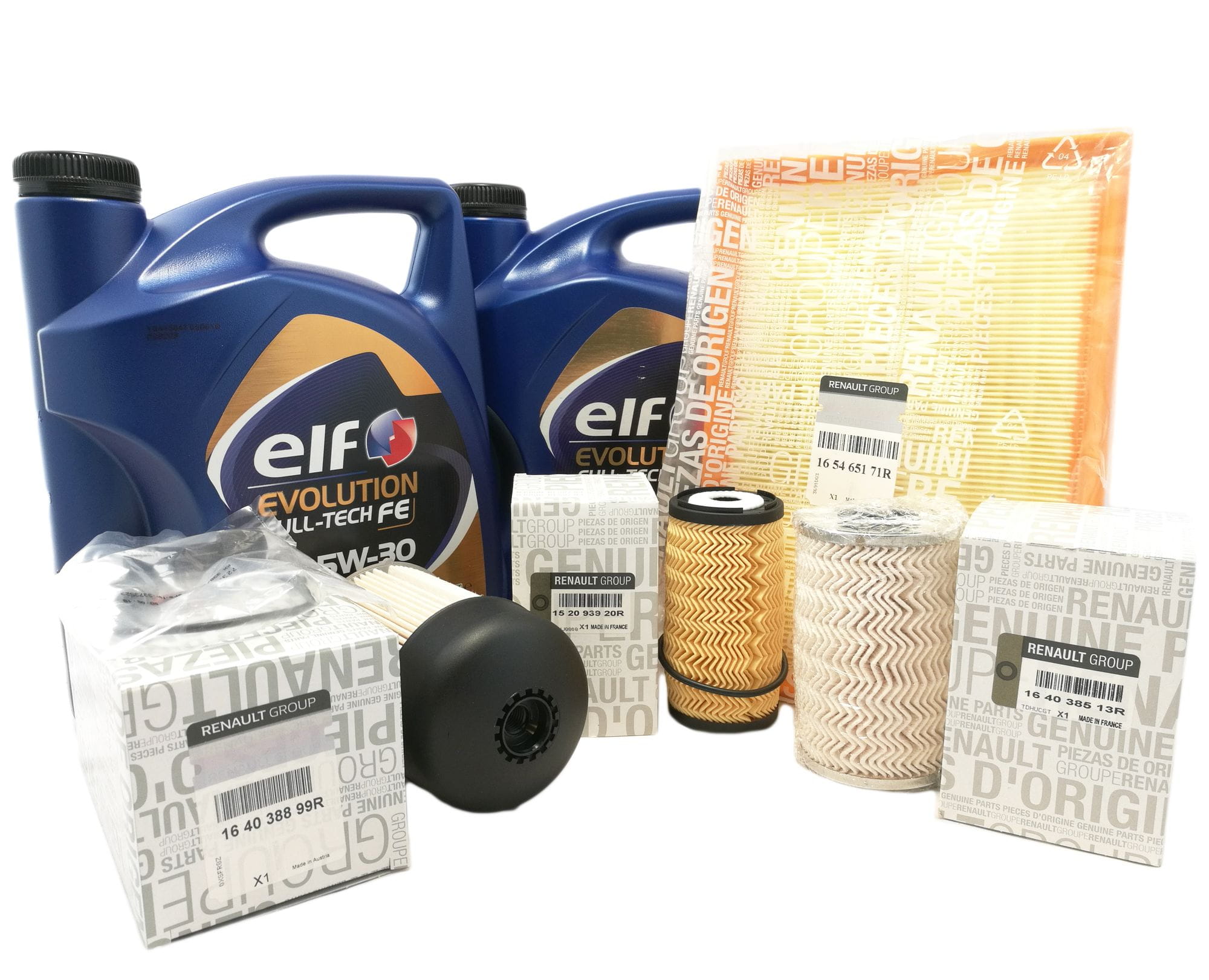 Oryginalny zestaw filtra oleju, powietrza, paliwa + Olej ELF FULL TECH 5W30 5L+ 5L do samochodu RENAULT MASTER III 2.3 DCI