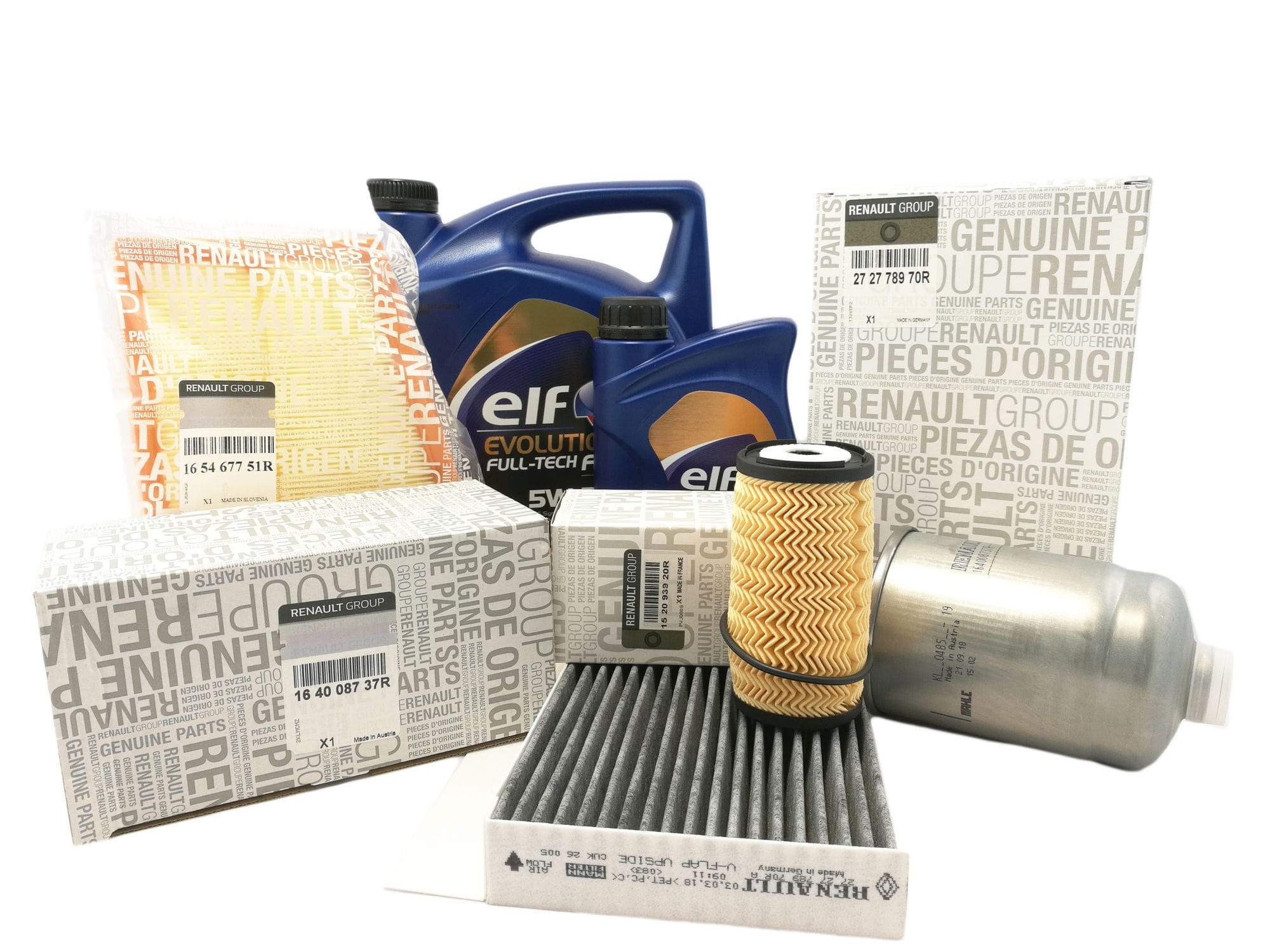 Oryginalny zestaw Filtra oleju, powietrza, kabiny, paliwa + Olej ELF FULL TECH FE do samochodu RENAULT MEGANE III 1.6 DCI